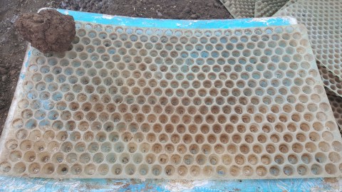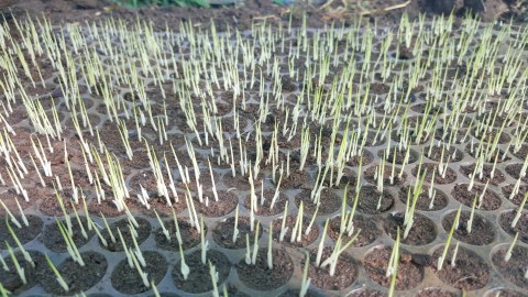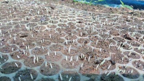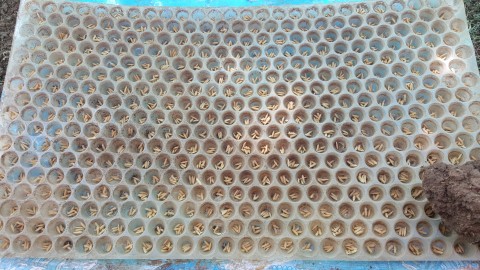 5.นำเมล็ดข้าวที่งอกแล้ว หลอดลงในถาดหลุม 3-5 เมล็ดต่อหลุม