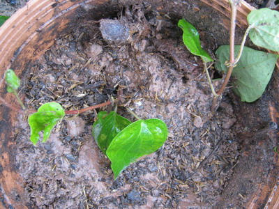 ตระไคร้ทำปวดไปทั้งตัวเลยค่ะ เมื่อวานปลูกตระไคร้ ขนาดหาวิธีที่ไม่ต้องออกแรงมากแล้ว ยังนอนปวดไปทั้งตัวเลยค่ะเลยต้องกินยาแก้ปวดไปสองเม็ด แถบจะลุกไม่ได้ ลุกมาก็เลยหางานเบา ๆ ทำ เดินดูพลูกินกับหมากที่ทำไว้เมื่อเดือนที่แล้ว ตายก็มีแตกยอดก็มี ตอนเอามาชำมีสองแบบด้วยกัน แบบแรกเอาเถาที่ขึ้นไปบนต้นไม้แล้วมาชำผลคือเน่าไม่แตกยอด แบบที่สองเอาแบบที่เกิดขึ้นในดินเถาที่เลื้อยตามดิน ผลคือแตกยอดวันนี้เลยเอามาทำอีกรอบดูสิว่าจะรอดหรือเปล่า แม่บอกว่าพลูมันทำอยากมากใส่ปุ๋ยมากไปก็ตาย บางที่แตกยอดแล้วก็ตายก็มี เมื่อหลายวันที่แล้วได้อ่านบล็อกของสมาชิกบ้านสวนการชำมะลิ เลยเอามาทำดูว่าจะออกรากหรือเปล่า ถ้าทำได้จะได้ไม่ต้องตอนแล้วทำไว้สองแบบ แบบที่หนึ่งตัดใบออกหมดเลย แบบที่สองไม่ตัด เดินดูกิ่งมะนาวที่ตอนไว้ตายไปสามกิ่งไม่แน่ใจว่าตอนกิ่งที่แก่ไปหรือเปล่ากบ้านสวนการชำมะลิ เลยเอามาทำดูว่าจะออกรากหรือเปล่าทำเดินดูพลูกินกับหมากที่แม่