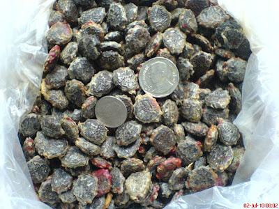 เป็นเมล็กฟักข้าวที่เล็กกว่าของพี่รัตนพงษ์มาก เขาว่าเป็นฟักข้าวที่อยู่ในป่า แหล่งของฟักข้าวนี้คือ จังหวัดตาก กลับไปแล้วค่อยเอาไปให้นะครับ