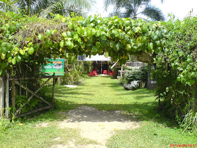ทางเข้าสวนปกคลุมไปด้วย "มะละกอย่าน" ผมก็เพิ่งได้ยิน