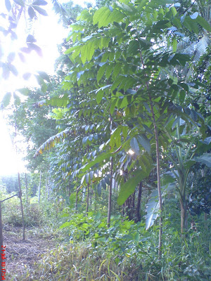 สืบเนื่องมาจากบล็อกพี่จันทร์เจ้าเกี่ยวกับมะฮอกกานี วันนี้ขอถือโอกาสนำเสนอมะฮอกกนีของผมบ้างนะครับ ผมปลูกเอาไว้แนวเขตแดนทั้งบริเวณบ้านและบริเวณสวน ซื้อมาตอนนั้นจำนวน 100 ต้น ปลูกทั้งหมด แต่ตอนนี้คงเหลือไม่ถึง ผมเลือกมะฮอกกานี้ด้วยเหตุผลเดียวที่ได้ข้อมูลจากลุงพูนมาว่ามันลำต้นจะขึ้นตรงไม่เอนหาแสง ส่วนจะได้เป็นบำนาญหรือไม่ไม่ได้หวังครับ ถึงแม้จะขึ้นหัวข้อเรื่องแบบนั้น