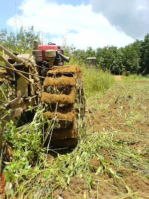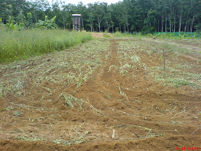 วันนี้มีนัดกับพี่ที่อยู่บ้านใกล้กัน นัดมาไถที่สำหรับปลูกข้าว อย่างที่เคยบอกว่าผมไม่อยากใช้คำว่านา เพราะมันไม่มีน้ำ ขอเรียกว่าที่ปลูกข้าวก็แล้วกัน ผมเองได้แบ่งที่ครึ่งไร่ไว้ปลูกข้าวจากที่ดินทั้งหมดสองไร่ครึ่งกว่าจะถึงวันนี้ต้องรอทั้งนั้น รอปรับที่ รอฝน รอปอเทืองโต รอพี่เขามาไถให้เพราะไม่มีรถไถเอง แต่ที่ไม่ต้องรอก็เมล็ดพันธุ์ข้าวแค่บอกว่าอยากได้ข้าวไร่ คือพันธุ์ข้าวที่ปลูกโดยไม่ต้องมีน้ำขัง สมาชิกบ้านสวนพอเพียงก็จัดให้ พี่พุทธบุตรนั่นเอง ไม่นานผมก็คงได้ปลูกข้าวสมดังหวังสักที มาดูบรรยากาศการอำลาปอเทืองกันครับ