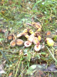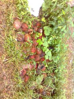 เปลือกลูกกฤษณาครับ ผลร่วง แตกหล่นโคนต้น
