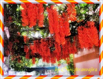 ...ต้นนี้ปลูกไว้บ้านเจ้านายผู้ใจดี บริจาคบ้านให้ใครๆทำอะไรได้ตามสะดวกที่ใช้ประจำก็รวมพล...กลางวันรวมพลเด็กๆ..พอเย็นก็รวมพลคนโตๆสนุกเฮฮาซะไม่มีอ่ะเจ้านายแหละตัวเอ้ขาเฮ...นี่เลยปลูกให้เลื้อยขึ้นจากข้างบ้าน มันก็ไต่ขึ้นลามปามเต็มหลังคาและออกดอกย้อยพรึบมาให้ได้ยล..