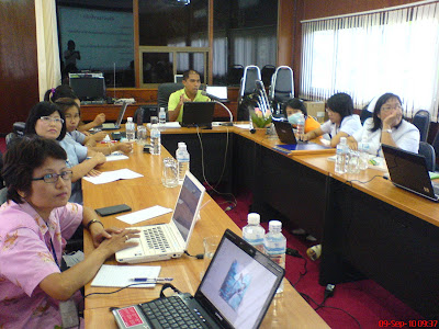 งานวันสุดท้ายที่โรงพยาบาลกุดชุม ถึงคิวผมที่จะต้องสอนเจ้าหน้าที่ของโรงพยาบาลกุดชุมให้เขียนบล็อกใน เวบโรงพยาบาลกุดชุม เวลาที่สอนเก้าโมงถึงเที่ยง เนื่องจากเวบโรงพยาบาลกุดชุมใช้โปรแกรมเดียวกันกับเวบบ้านสวนพอเพียงของเรา ผมเลยใส่เสื้อบ้านสวนพอเพียงมาสอน เวลายกตัวอย่างก็ยกตัวอย่างเวบบ้านสวนพอเพียง เพื่อเป็นการประชาสัมพันธ์เวบไปเลย งานนี้ก็ได้สมาชิกเพิ่มขึ้น