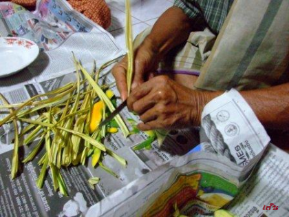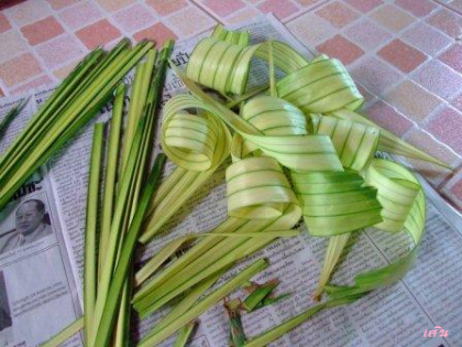 นำใบกะพ้อมาทำการรีดเสียก่อนแล้วเก็บแบบนี้
