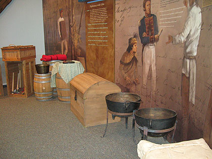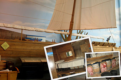มาชมเรือที่เขาสร้างจำลองขึ้นมาตามแบบเรือที่คณะสำรวจฯใช้ และภายในเป็นที่นอน ภาชนะ อาหาร และข้าวของเครื่องใช้ ในสมัยก่อน
