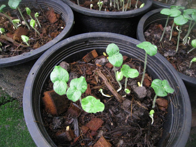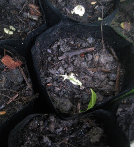 ลูกคนแรก อิๆๆๆ อย่าคิดมาก ลูกต้นฟักข้าวครับ (สงสัยติดเชื้อพี่ตั้ม) หลังจากได้รับเมล็ดฟักข้าวจากลุงโรสสักช่วงวันพุธ.....พอ วันเสาร์ที่18เริ่มเพาะเลย จำนวน 13 เม็ด โดยใช้สูตรลุงพี คือแกะเปลือกออกหมดเลยแล้วจึงเอาไปเพาะ ปรากฎว่าได้ผลครับ ผ่านไป5วัน คือวันที่23 งอกออกมาก่อนเลย 1ต้น ใช้เวลาแค่6วันเอง และโตเร็วมาก ส่วนที่เหลือ เริ่มโผล่จุกออ่นๆมาบ้างบางต้น แปลกดี งอกไม่พร้อมกัน
