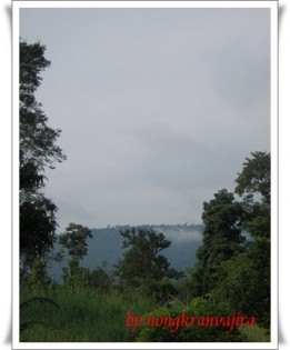 อากาศที่นี่ก็เหมือนกับบ้านเราแต่กลางคืนจะเย็นกว่านิดๆเราหลับสบาย เช้ามีหมอกหนาจนมองไม่เห็นภูเขาสายๆหน่อยหมอกคลายค่อยเห็นฉากหลังเป็นภูเขา เช้าหลังจากจิบกาแฟและเชคเอาท์ เราไปกินข้าวร้านเดิมเป็นข้าวต้มและต้มเลือดหมูร้อนๆรสชาติอร่อย แล้วเราก็นั่งรถไปเที่ยวต่อไปแวะตามรายทางมีจุกชมวิวและรีสอร์ทมากมายตามหุบเขาสูงต่ำเราแวะเข้าห้องน้ำที่จุดชมวิวเขื่อนลำพระเพลิง ซื้อเห็ดหอมสดที่นี่