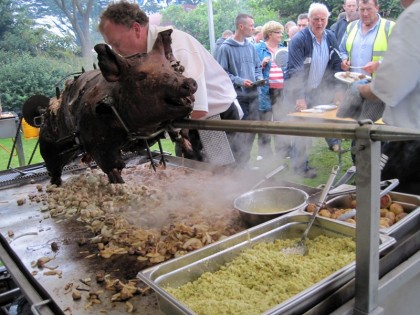 คนเยอะมากๆ เพราะมีอาหารบริการฟรีด้วย แต่ว่าต้องลงทะเบียนเข้างานคนละสิบยูโร รายได้หลังหักค่าใช้จ่ายจะมอบให้มูลนิธิเด็กดาวซินโดรมค่ะ งานจะจัดทุกปีในช่วงหน้าร้อน โดยคณะกรรมการหมู่บ้านร่วมกับทาง ไอริชผับซึ่งเป็นศูนย์กลางการพบปะของคนในหมู่บ้าน อาหารที่นำมาบริการในครั้งนี้ ทำโดยเชฟจากโรงแรมสี่ดาวค่ มาดูกันว่ามีอะไรให้ลองชิมกันบ้าง