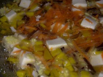 อยากทานให้ครบ 5 สี ก็เลยซอย เห็ดหูหนู-แครอท-ข้าวโพดอ่อน-ฟักทอง-เต้าหู้อ่อน ต้มในกะทะ