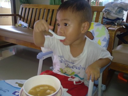 ว่าที่นักธุรกิจพันล้าน นามว่าต้นกล้า ซดน้ำซุปเต้าเจี้ยวนี่เอง แบ่งน้าบ้างนะ จะได้ช่วยๆกันรวย