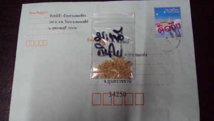 ล่าสุด จากกรุงเทพ คุณเด่นชัยค่ะ มี มะหลอด ละไม ฟักข้าวจากเวียดนาม รายนี้แดงเคยส่งเม็ดบักก่อไปให้ค่ะ ส่งไปอย่างเดียว แต่ได้รับกลับมา 3 อย่าง