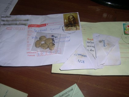 ขอบคุณ น้องป้าเล็ก ที่ส่งเม็ดถั่วครกรอบที่สองมาให้ หลังจากที่ครั้งแรกเพาะแล้วหลับไม่ยอมตื่น ครั้งนี้ถ้าเพาะไม่ขึ้นอีกสงสัยต้องโดนไม้เรียวแน่ ๆ และ น้องแอน ที่ส่งเม็ดลูกแห้มกับเม็ดมะระมาให้