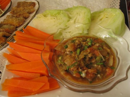 นํ้าพริกช้างเหยียบ กับผักลวกค่ะ คุณเล็กจะลองทำดูได้นะคะ ทำเหมือนคุณทรายบอกค่ะ