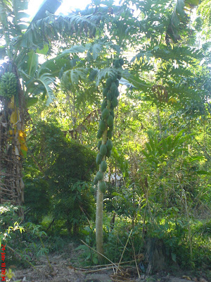 บริเวณบ้านมีมะละกอหลายต้นครับ ที่ตั้งใจปลูกมีเพียง 2 ต้น นอกจากนั้นก็งอกขึ้นเอง ปล่อยให้โตเอง ไม่รดน้ำ ไม่สนใจอะไรมัน รอเก็บมากินอย่างเดียว แต่อะไรที่ไม่ค่อยดูแล ไม่สนใจมัน มันก็ดีได้นะ ไม่รู้จะเปรียบเทียบกับอะไรดี