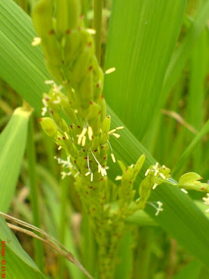 เมื่อวานตอนใกล้เที่ยงลุงพูนมาเยี่ยมที่ในสวน ขณะที่ผมกับพ่อกำลังไล่นกลาอยู่ ผมก็พาลุงพูนก็เดินชมแปลงข้าว มีสิ่งหนึ่งที่ผมเห็นจนชินตาแต่ไม่รู้ว่าจะเรียกมันว่าอะไร ลุงพูนบอกว่า "เกสรข้าว" ผมได้ถ่ายรูปเอามาฝากครับ