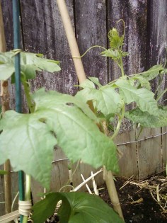 บวบสองต้นนี้ได้มาจากร้านขายต้นไม้ในตลาดนัดไกล้บ้านเป็นร้านของคนFiji คนประเทศนี้เขากินผักคล้าย ๆ เรา