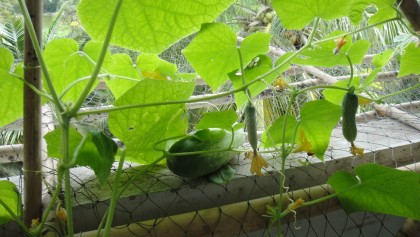 ลองปลูกผักในกระสอบเป็นครั้งแรก ซื้อเมล็ดพันธ์ใส่ถุงสวยงามมาบอกว่าลูกดก อัตรางอก +80% หว่านปลูกหลายต้นแต่ติดสองต้น มีลูกซัก 10 ลูกมั้ง แต่ได้รางวัลความภาคภูมิใจ และไม่เคยกินแตงกว่าหวาน กรอบ อร่อยอย่างนี้ ...จริงๆค่ะ ถ้าไม่เชื่อต้องลองนะ