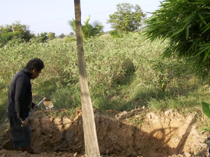 จึงหันมาใช้วิธีใหม่ เริ่มจากขุดบ่อเล็กๆไว้สำหรับพักน้ำ
