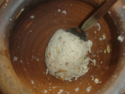 โขลกกระชาย ถ้าชอบเผ็ดใส่พริกสดด้วยค่ะ แกะปลาต้มใส่ ระวังก้างนะคะ ตำๆๆ