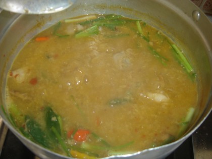 น้ำแกงกะทิ ใส่ไก่แปลกดีนะค่ะ เสียดายจังผักเอาไว้ดู