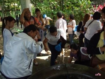 ถัดจากบ้านมา บ่อน้ำที่ไกด์บอกว่า ใช้มานาน ระดับน้ำในบ่อสูงกว่าระดับน้ำทะเล หากใครประพรม ลูบไล้ร่างกาย จะเป็นศิริมงคล
