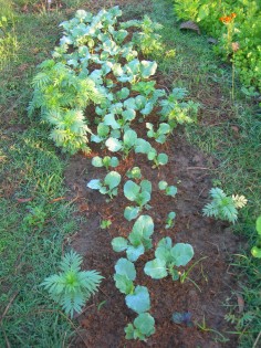 บล๊อคโคลี่ ปลูกดาวเรืองล้อมรอบเพื่ไล่แมลงด้วย ถ้าสังเกตดีๆจะเห็นกะหล่ำม่วง 1 ต้น อิอิ..