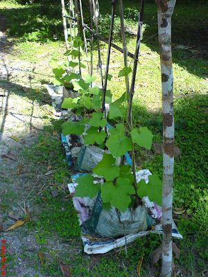 เมื่อปลูกผักทั้งสองอย่างได้ผลดีจึงทดลองปลูกบวบบ้าง เพราะชอบกินบวบ เท่าที่เห็นตอนนี้บวบก็เติบโตดี
