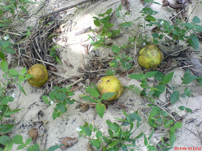 ลูกส้านที่หล่นอยู่บนพื้นทราย