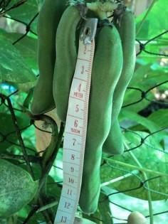 วัดความยาวให้ดู ตามความสงสัยของ ดงดม ฝักที่เห็นยาวสุดแล้ว 12 เซ็น ก็ไม่รู้ว่า สมาชิกคนอื่นๆ เขาปลูกกันได้ยาวแค่ไหน