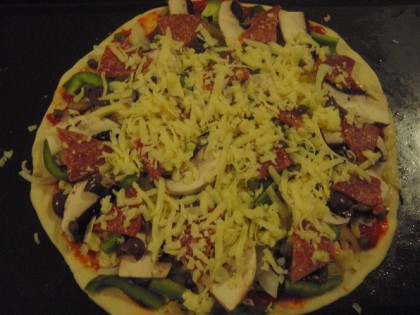 Her Pizzas taste much better ,and it's much cheaper than the store brought one . I enjoy her pizzas lots. She makes her own pizza dough and pizza sauce as well. Moreover, she doesn't mind to give away the recipe to everyone who wants as well Just let me know. She make three toppings for me the first one is Salami and vegetables, second one is Bacon and our spring onions, the last one is Teriyaki Chicken Piza. Let see them for your self!!!