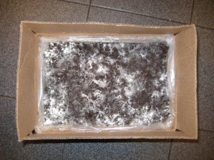 นี่คือ 15 วันแรก ได้เท่านี้เอง ขาวๆที่เห็นนั้นคือเชื้อเห็ด ที่กำลังเดินกระจายไปทั่วกล่อง