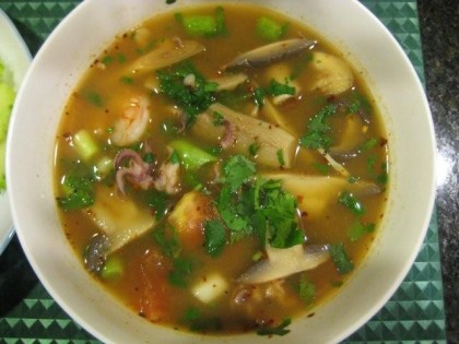 แล้วจะเอามาทำไรกินดีล่ะ ค้นตู้เย็นเห็นมี กุ้ง กะปลาหมึกอยู่ งั้นก็..นี่เลย..."ต้มยำ"