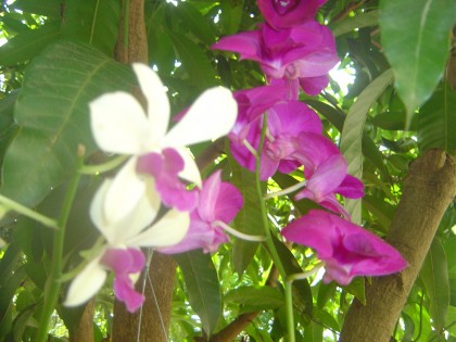 อยู่บนต้นมะม่วง ปีนี้มะม่วงออกดอกติดลูกแล้วหลายช่อแต่จะเหลือลูกไว้ให้กินหรือเปล่าไม่รู้ ตั้งแต่ปลูกมาได้กินแล้ว 2 ครั้งๆ ละ 1ลูก 555 มีดอกไม้อีกอย่างค่ะสวยมาก รูปนี้จากบ้านพี่สาวที่แคนาดาแต่พอมาปลูกภาคใต้บ้านเรากลับมีแต่ใบไม่มีดอก