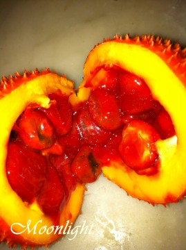 ฟักข้าวบ้านป้าป้อมทุกลูก ได้จากการผสมเกสร แกขยันผสมมาก เพราะกินฟักข้าวดองน้ำผึ้งเหมือนกัน